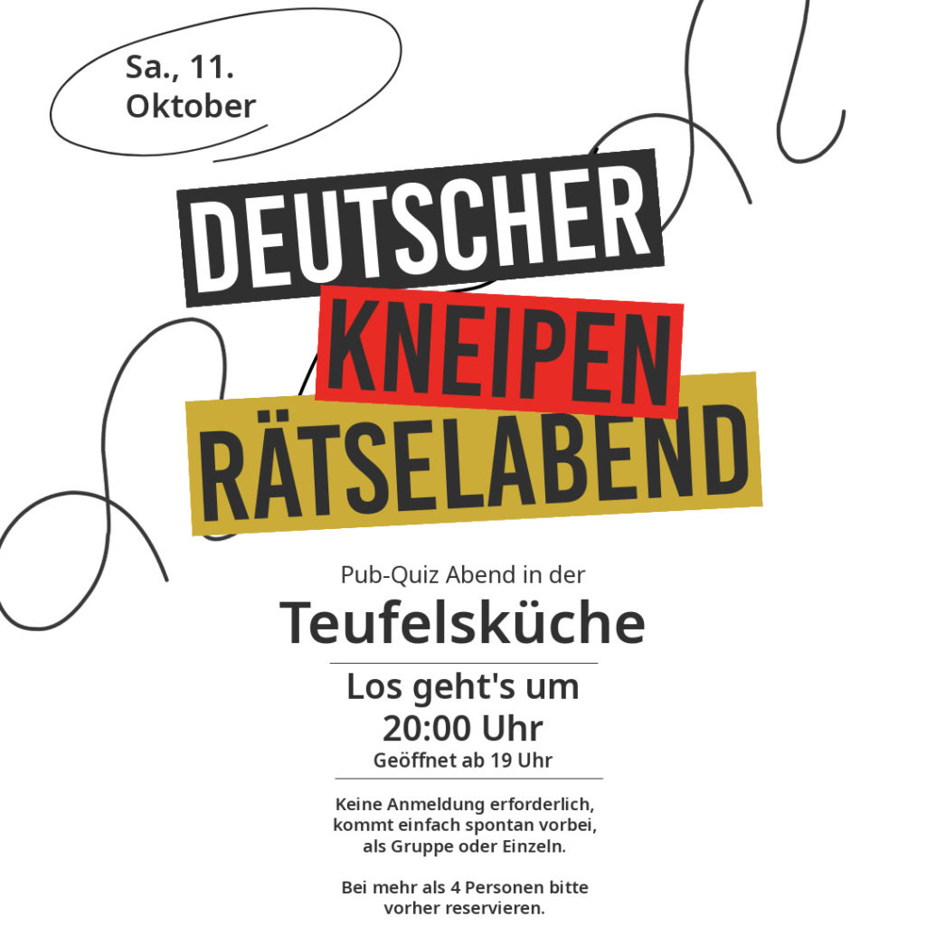 Sa. 11.10. geöffnet ab 19:00 | 20:00 Deutsches Pubquiz |